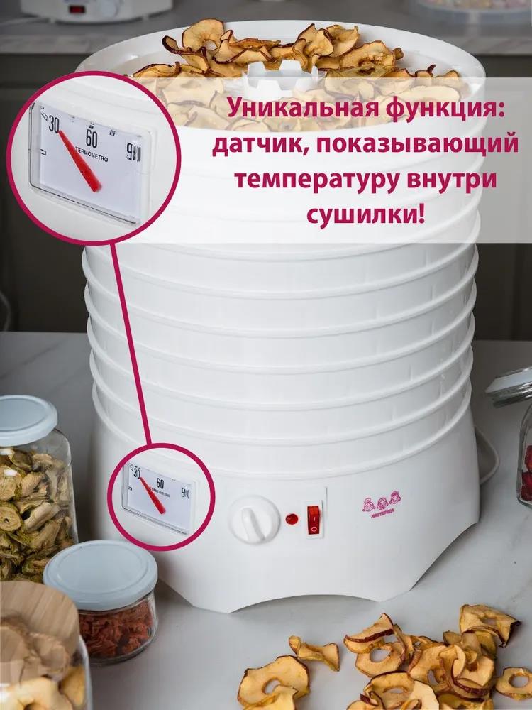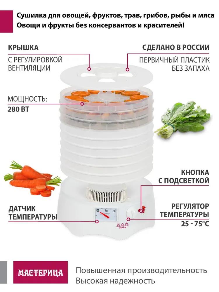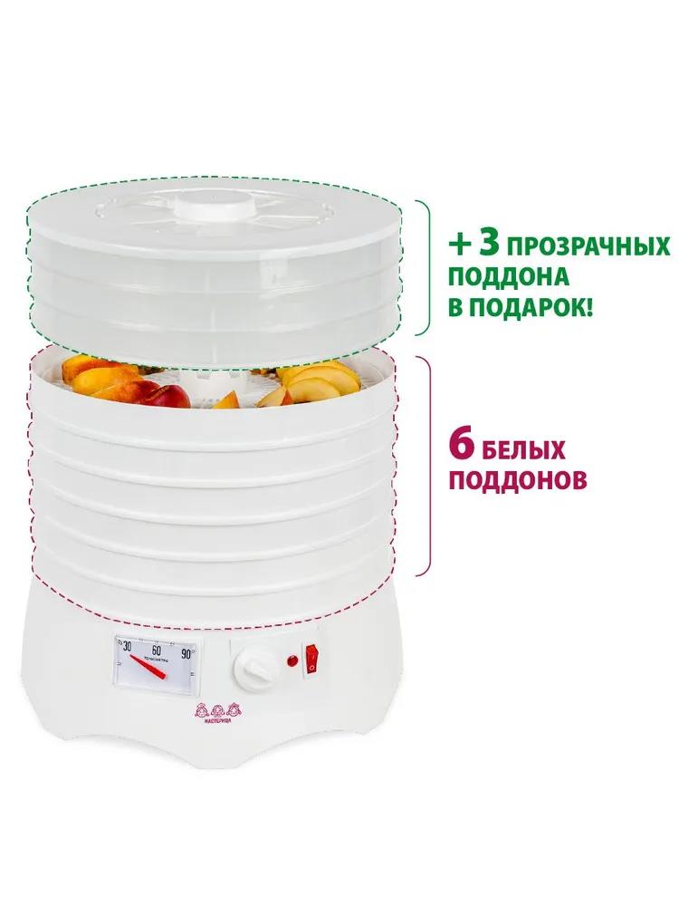 Сушилка для овощей Мастерица EFD-0903VM 6 белых поддонов + 3 прозрачных поддона в подарок, D 31.6 см (поддонов 6 шт, 280 Вт , белый)