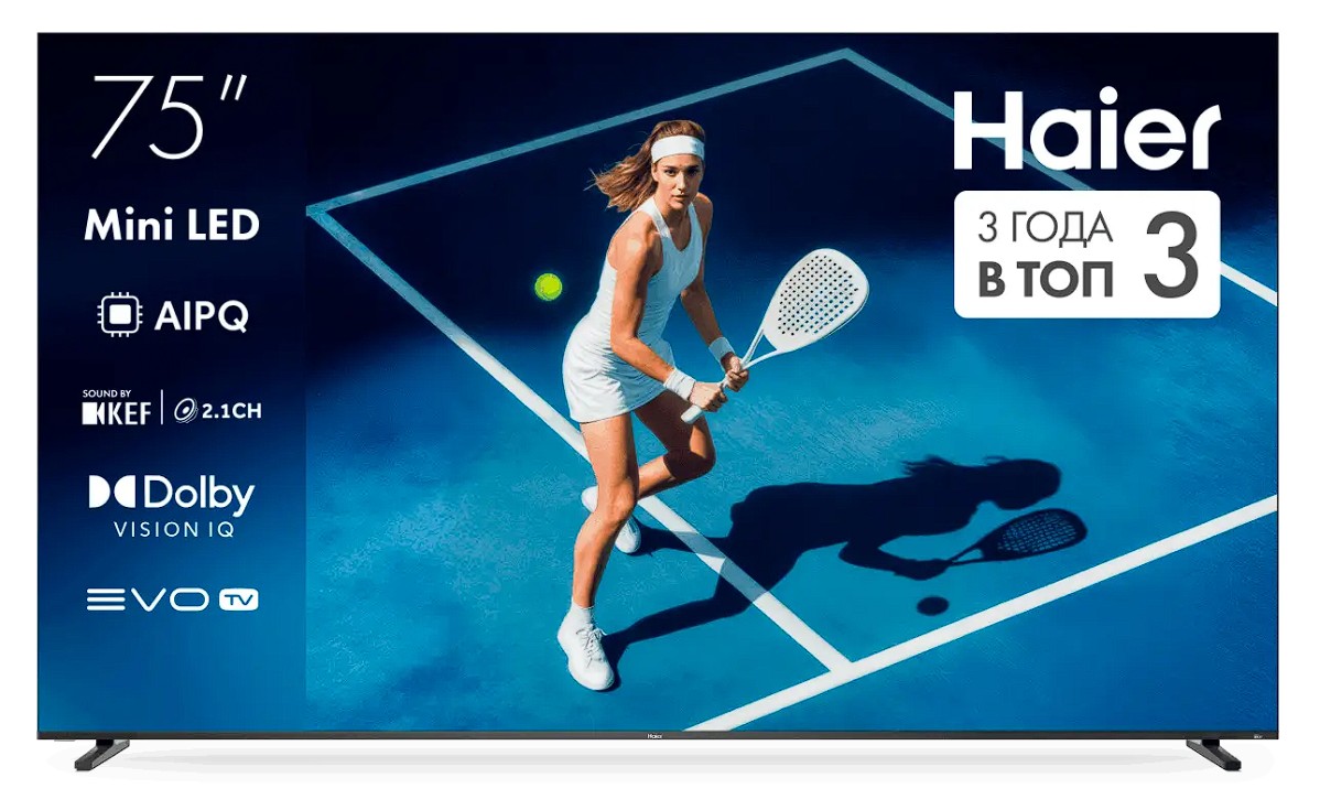 Телевизор Haier 75 MiniLED M7 выполнен в современном дизайне с тонкими рамками и рассчитан на использование в просторных помещениях. Диагональ 75 дюймов обеспечивает комфортный просмотр фильмов, спортивных трансляций и игрового контента.