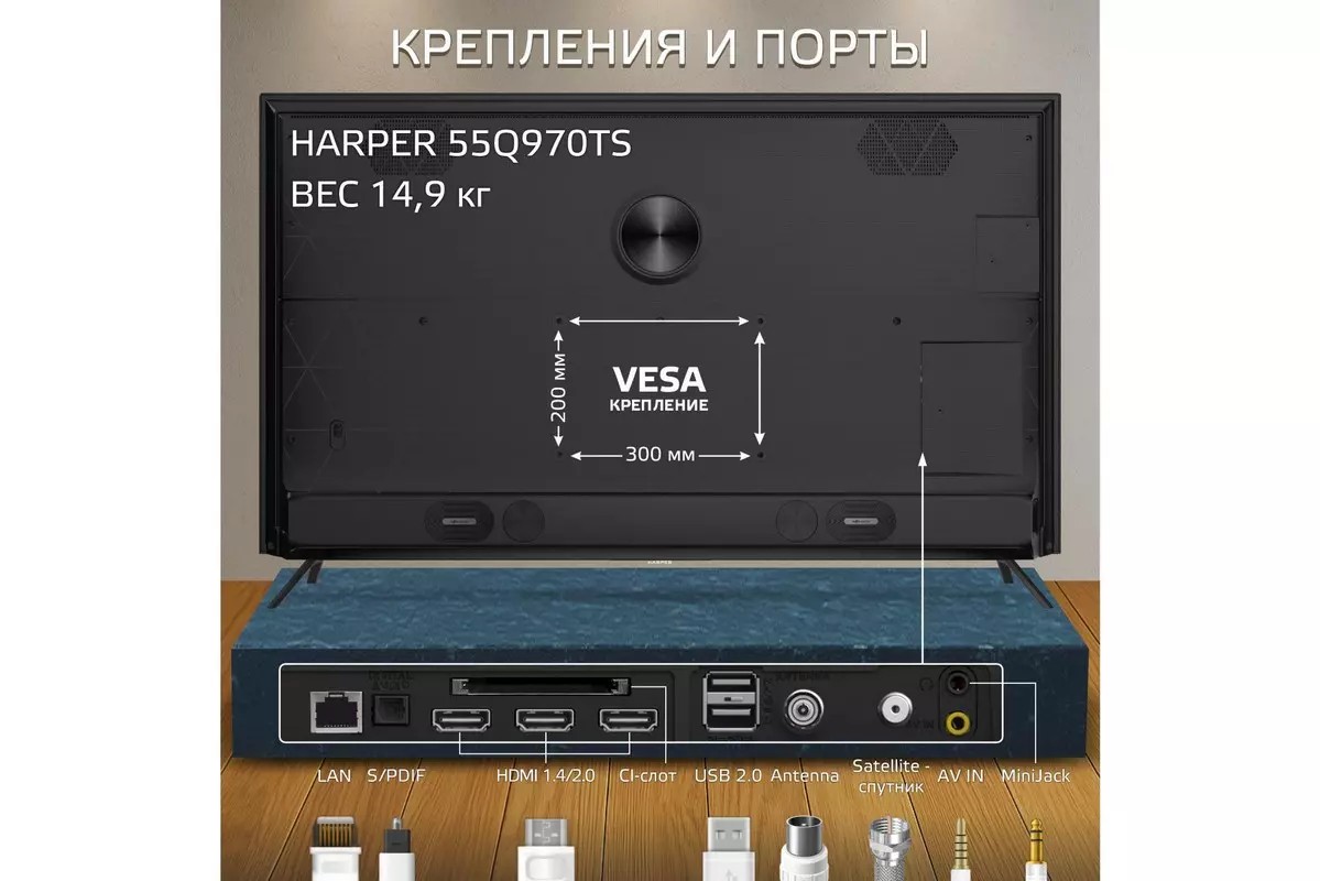 Телевизор Harper 55Q970TS 55" HDR, 4K Ultra HD Smart TV черный - Интернет-магазин ВСЁ В ОДНОМ.РФ: бытовая техника, электроника, товары для дома и др.