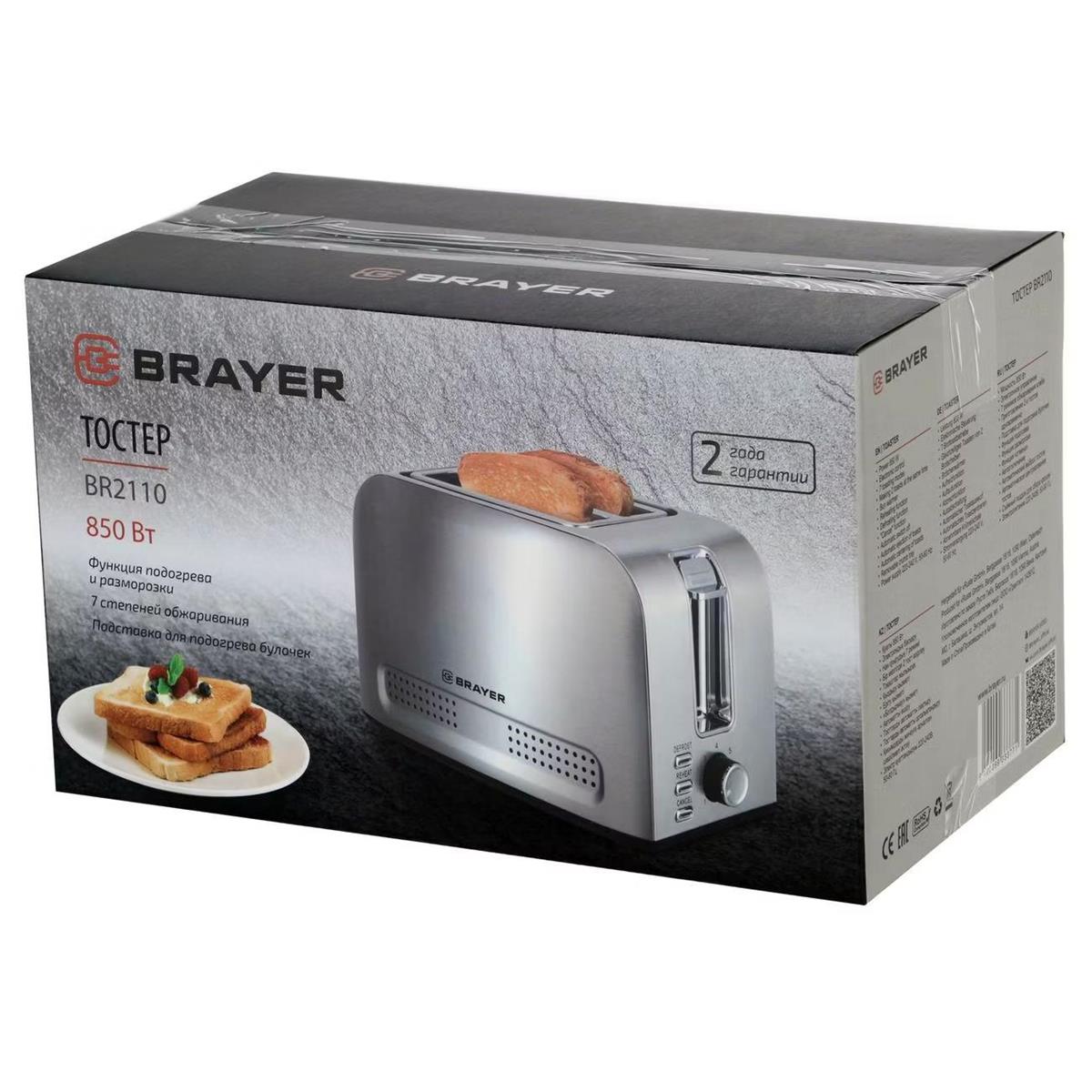 Тостер Brayer BR2110 (850 Вт серебристый, стальной) - Интернет-магазин ВСЁ В ОДНОМ.РФ: бытовая техника, электроника, товары для дома и др.