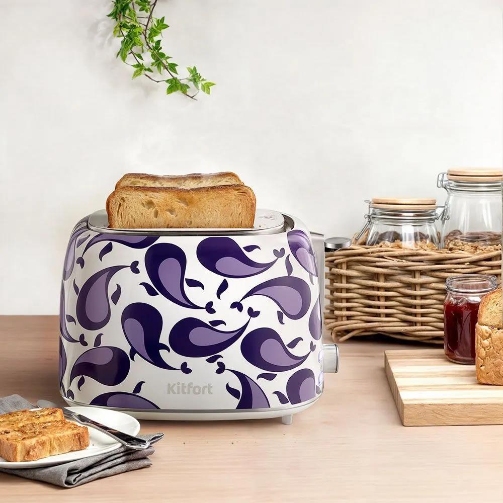 Тостер Kitfort КТ-6863 (1080 Вт  фиолетовый, белый) - Интернет-магазин ВСЁ В ОДНОМ.РФ: бытовая техника, электроника, товары для дома и др.