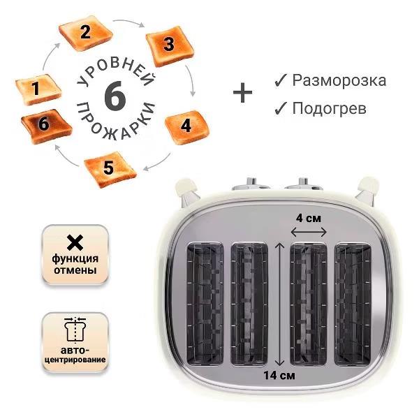 Тостер Tesler TT-445 BEIGE (1500 Вт  бежевый) - Интернет-магазин ВСЁ В ОДНОМ.РФ: бытовая техника, электроника, товары для дома и др.