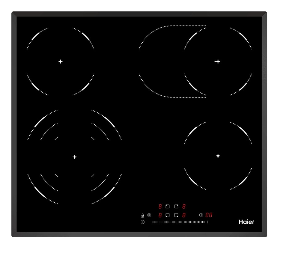 Haier HHY-C64TOVB — это современная независимая электрическая варочная панель из стеклокерамики с быстрым нагревом Hi-Light и удобным слайдерным управлением.