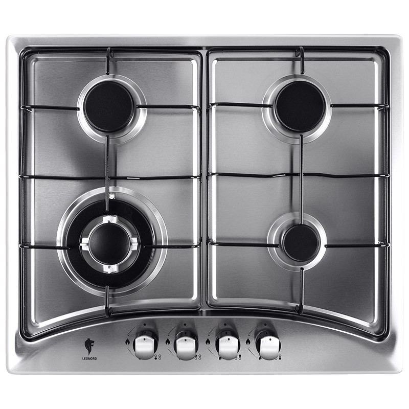 Газовая варочная панель Leonord LEG-60406S — это панель из стали на 4 конфорки, оснащенная электроподжигом, а также фиксированным положением "минимальное пламя".