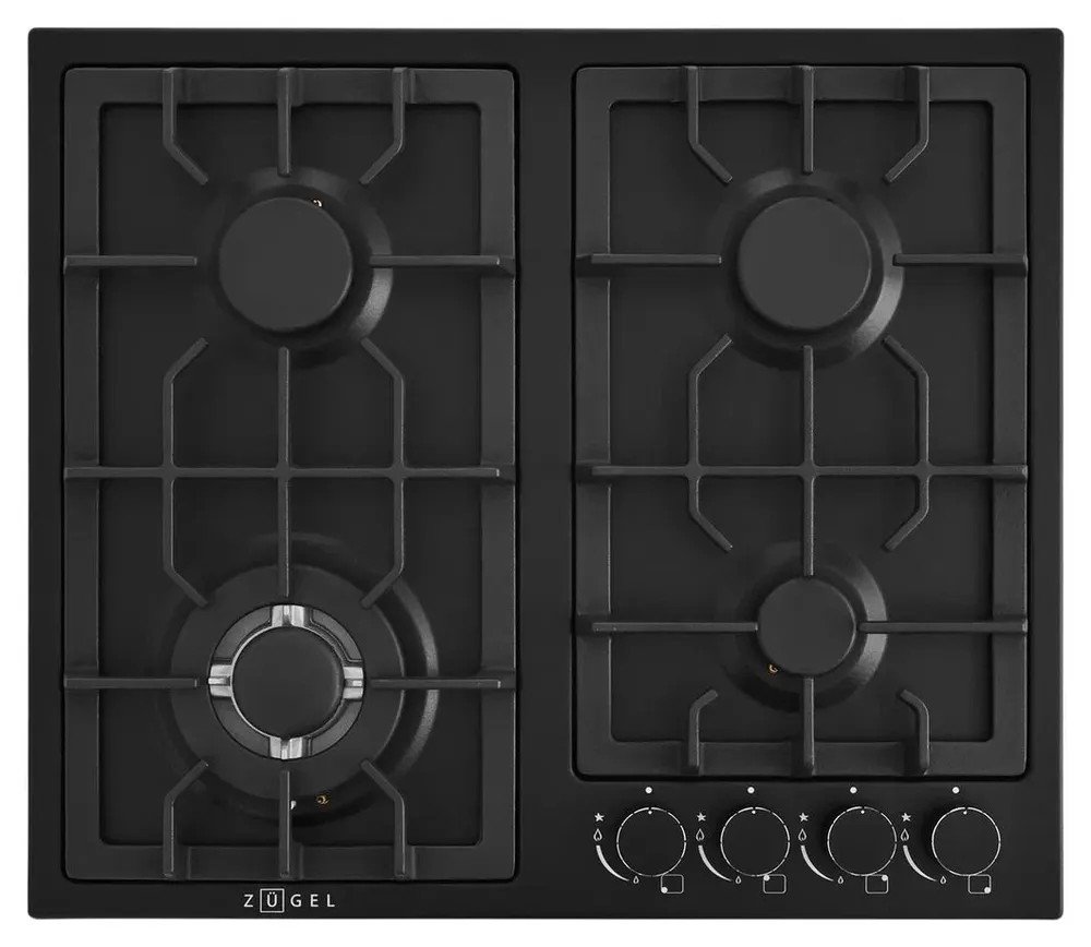 Газовая варочная панель ZUGEL ZGH600B — это независимая встраиваемая поверхность с 4 конфорками, выполненная в черном матовом цвете. Основной особенностью модели является мощная WOK-конфорка с тройным контуром пламени.