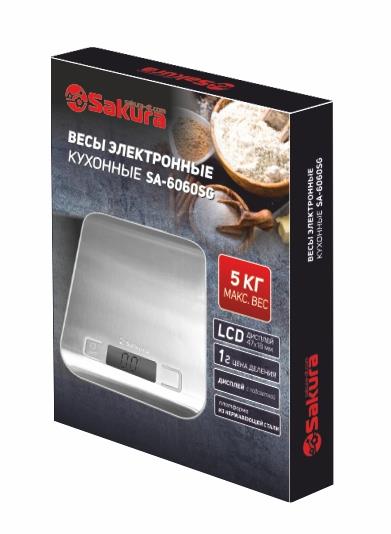Весы кухонные Sakura SA-6060SG 5кг (серый, нержавеющая сталь)