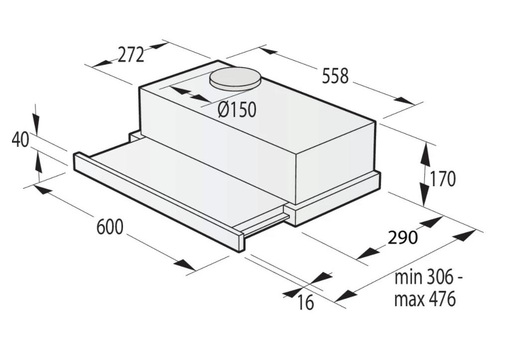 Вытяжка телескопическая Gorenje TH62E3X позволяет увеличивать глубину обслуживаемой зоны от 30.6 см до 47.6 см. Устройство выполняет задачи простой циркуляции и быстрого отвода из кухни посторонних запахов, что актуально для кухни. Прибор оснащен тремя скоростями при производительности, достигающей 350 м³/ч. Модель Gorenje TH62E3X класса C оснащена двигателем на 108 Вт (потребление 110 Вт) и плотным жировым фильтром. Удобному управлению скоростями способствует кнопочная панель. Система также дополнена LED-лампой на 2.1 Вт для освещения рабочей зоны.
