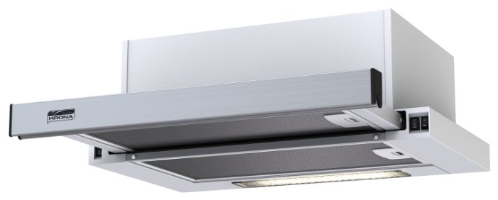 Вытяжка Krona Kamilla 500 Inox автоматически включается при выдвижении рабочей поверхности и выключается при возвращении в исходное положение. Модель имеет кнопочное управление, при помощи которого можно выбрать оптимальный режим очистки воздуха в помещении.